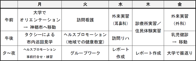 実施概要:医学生約4人単位で,1週間の泊まり込み型での実習