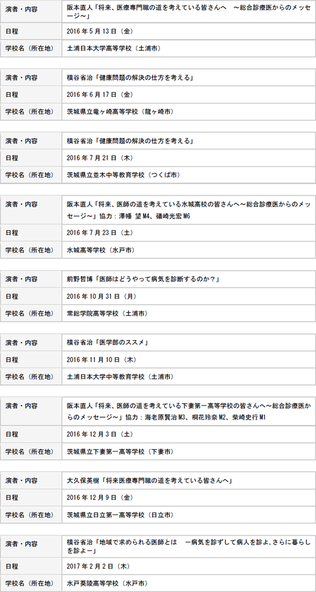 茨城県 高校生のための医学セミナー(医師の学校訪問)