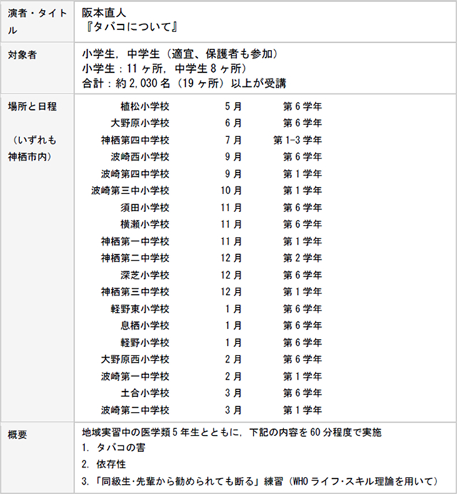 小・中学校対象 喫煙予防教室